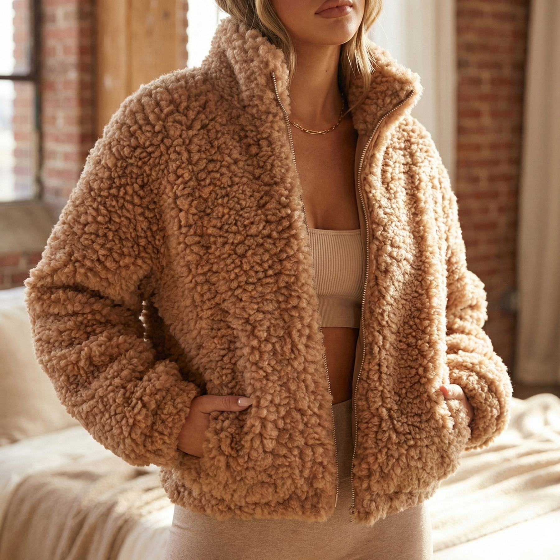 Designed with ultra-soft sherpa and a plush, cloud-like feel, this jacket wraps you in cozy warmth for cold days and chilly nights. Its bold, puffy shape and relaxed fit create a standout look that feels perfect for coffee runs, weekend plans, or staying in.