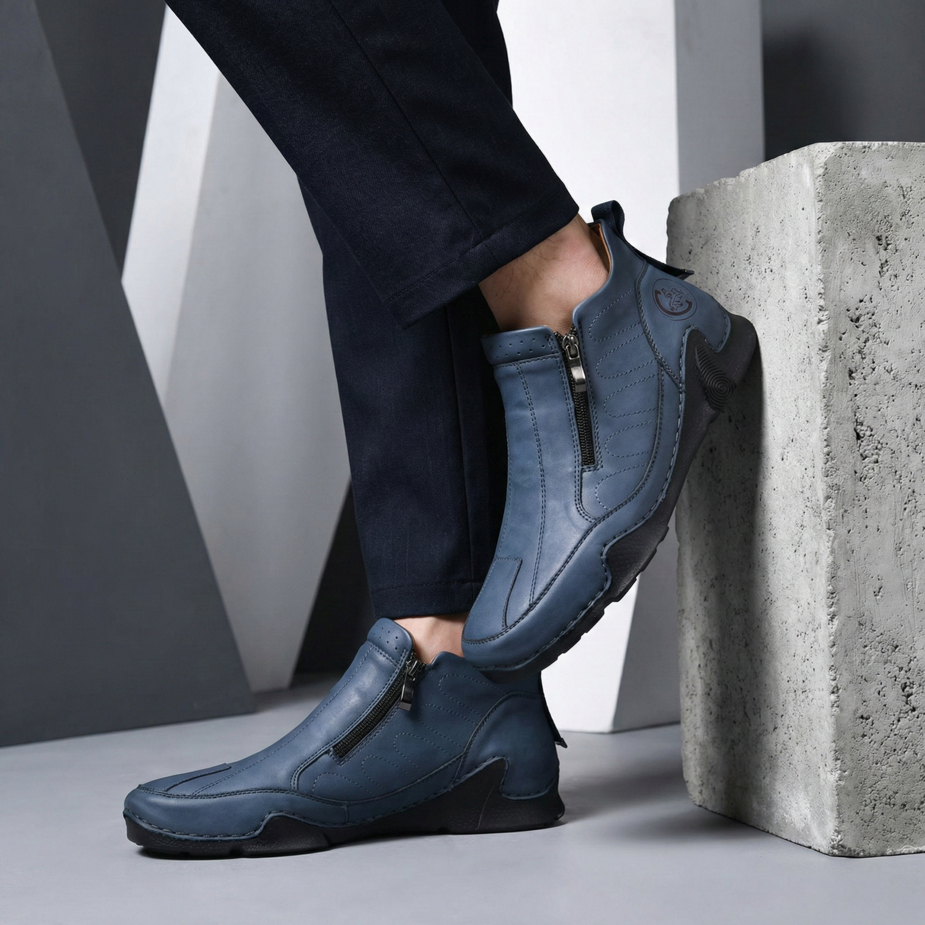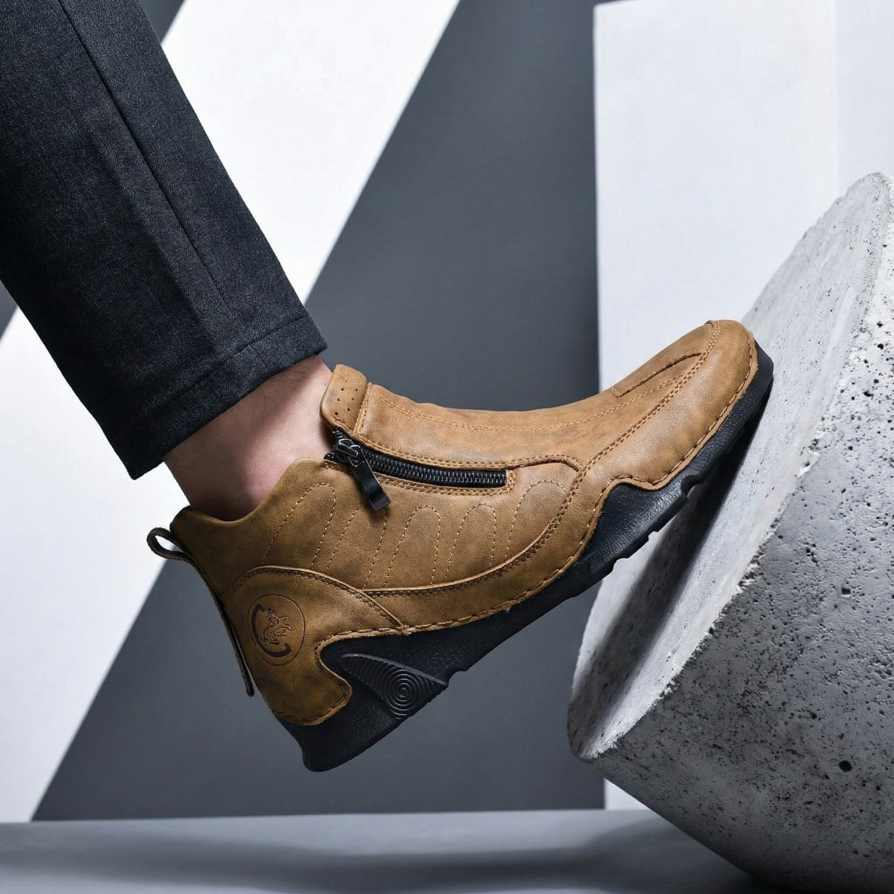 Designed with a smooth leather finish and a streamlined side zipper, these shoes deliver a distinctive look. Intricate stitching traces the panels with precision, while an ergonomic cushioned sole supports the foot for lasting comfort and support.